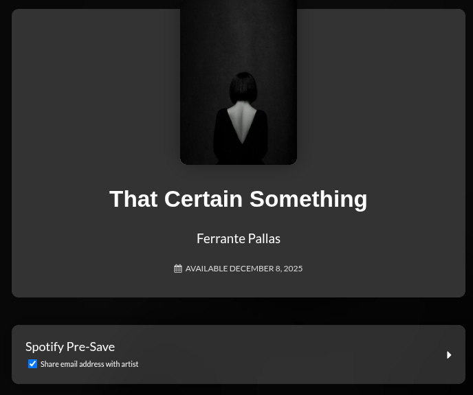 Ferrante Pallas is the ‘artist’ under whom the performances are created. Singers and other musicians are encouraged to cover this song — that’s the whole point of this, to engender real live performances of this music, in addition for listeners to enjoy this production template.